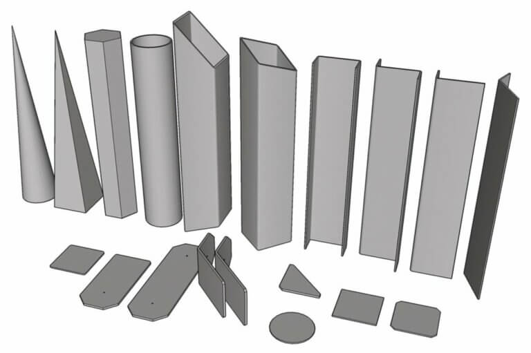 Plugin 3E Parametrické tvary slouží k vytváření základních tvarů jako: kužel, pyramida, hranol, trubka, trubka s uzavřeným koncem, čtvercový profil, čtvercový profil s uzavřeným koncem, šikmý čtvercový profil, deska, zkosená deska, profil U, profil Z, profil L.